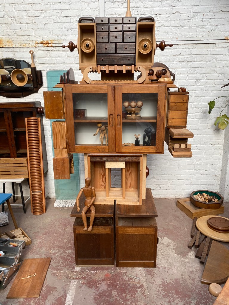 As an artist and designer, I believe nothing truly reaches the end of its life. What others discard, I see as raw potential. Roboboard is a perfect example of this philosophy. I created this sculptural piece from old, abandoned cabinets, assembling them into a playful, robotic form.